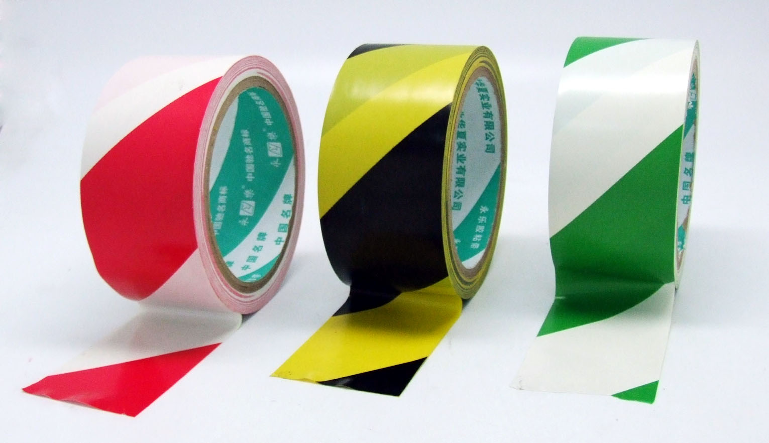 各色的警示膠帶(warning tape):黃黑警示,全紅警示,全黃警示,綠白警示等:粘貼于地上、墻上和機器上起禁止、警示、提醒和強調作用(PVC warning tape)